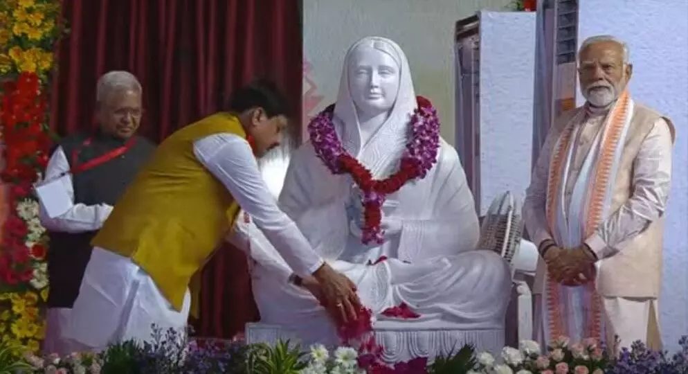 प्रधानमंत्री मोदी ने भोपाल में लोकमाता देवी अहिल्याबाई होलकर की प्रतिमा पर पुष्पांजलि कर और माला पहनाकर महिला सशक्तिकरण महासम्मेलन का शुभारंभ किया। राज्यपाल मंगूभाई पटेल और मुख्यमंत्री मोहन यादव ने भी पुष्पांजलि अर्पित की।