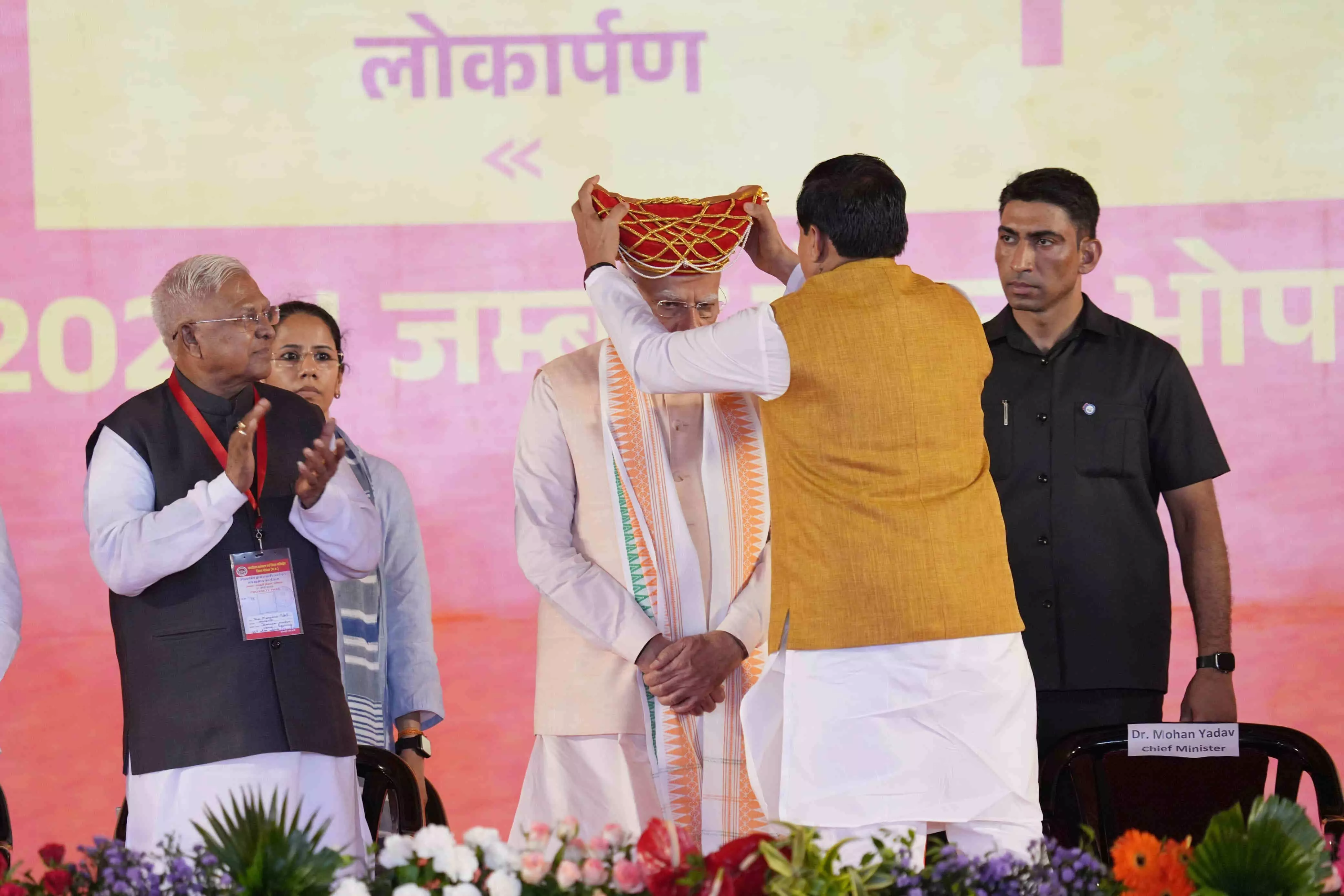 PM मोदी का भोपाल दौरा...मुख्यमंत्री मोहन यादव ने पगड़ी पहनाई।
