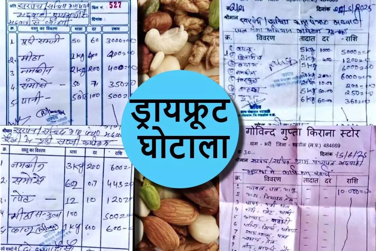 Shahdol Dry Fruit Scam Bhadwahi : शहडोल जिले में रंगाई पोताई के बाद ड्राईफ्रूट घोटाला सामने आया है। भदवाही पंचायत ने जल गंगा संवर्धन अभियान के तहत आयोजित जल चौपाल में अफसरों को 14 हजार के काजू-किशमिश खिला दिए। इसके बिल सोशल मीडिया पर वायरल हुए तो विभाग में हड़कंप मच गया।