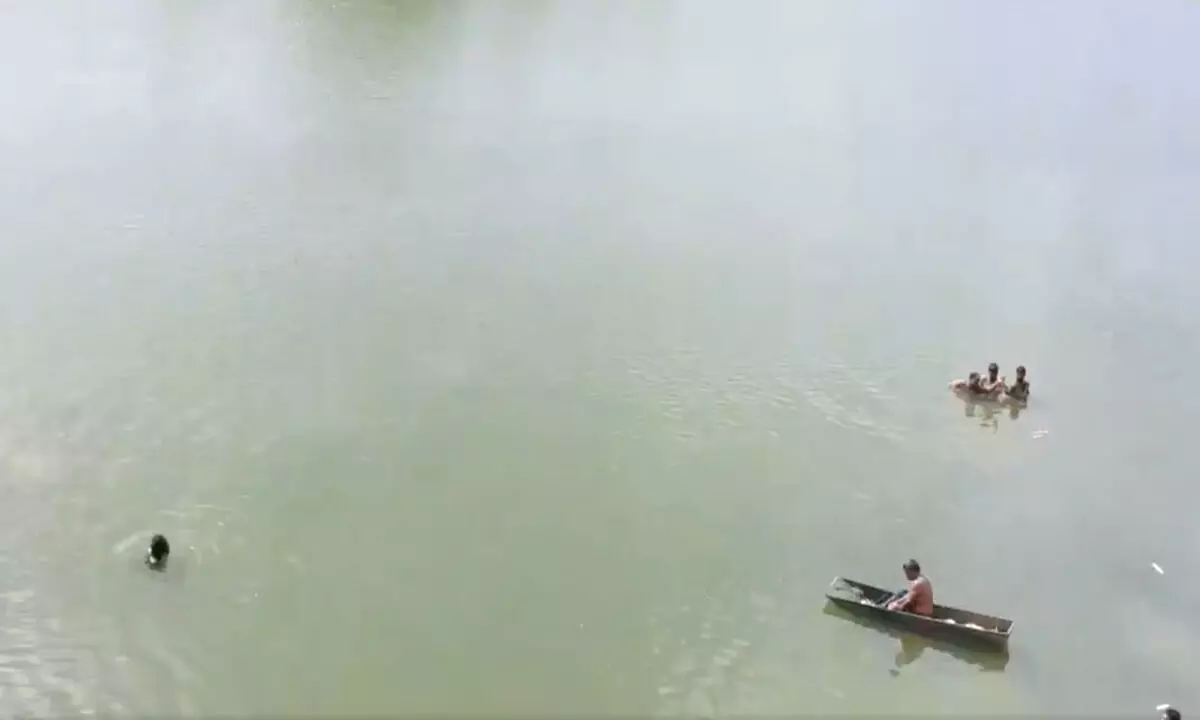 #WATCH | Ujjain, Madhya Pradesh: 2 dead and 4 injured as tractor overturns in Chambal river during Durga immersion.