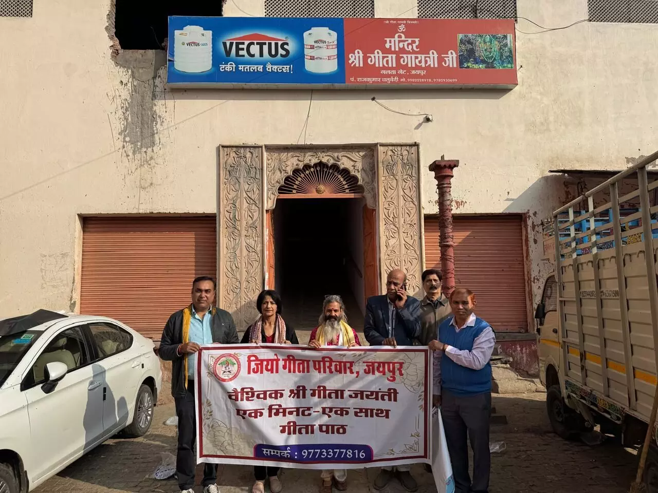 इसी श्रंखला में आज गीता गायत्री मंदिर में सामूहिक गीता पाठ का आयोजन भी किया गया। कार्यक्रम के पश्चात श्रद्धालुओं ने गोविंद देवजी मंदिर में दर्शन-पूजन किया और 1 दिसंबर को एक मिनट सामूहिक गीता पाठ में भाग लेने के लिए आमजन से appeal किया। इस दौरान प्रशासनिक अधिकारी, विद्यालय प्राचार्य, व्यापारी वर्ग और रोटरी क्लब के पदाधिकारी मौजूद रहे।