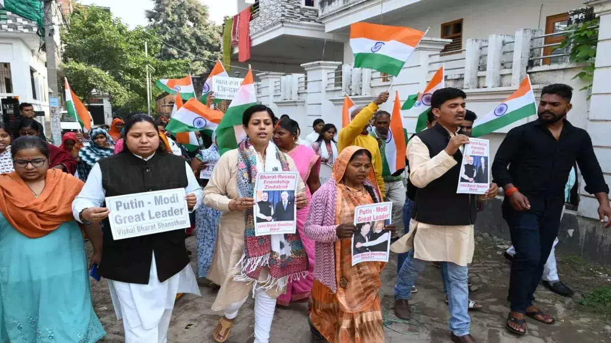वाराणसी में पुतिन की तस्वीर की आरती और फ्रेंडशिप मार्च