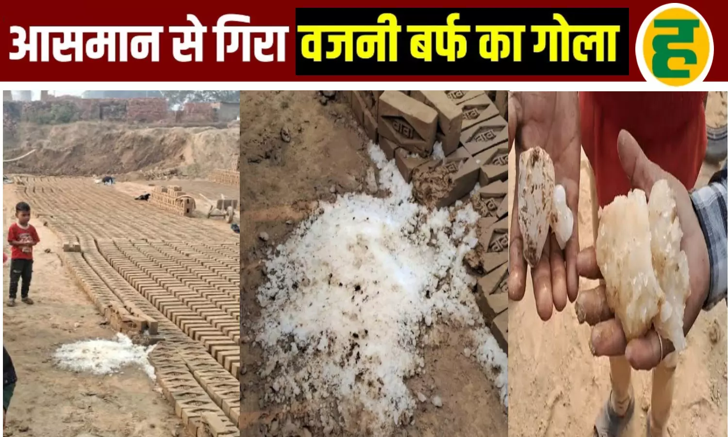 बदायूं : उत्तर प्रदेश के बदायूं जिले में रविवार की सुबह एक हैरान कर देने वाली घटना ने सबको चौंका दिया। बिल्सी क्षेत्र के एक ईंट भट्ठे पर काम कर रहे मजदूर उस समय दहशत में आ गए जब साफ आसमान से अचानक बर्फ का एक भारी-भरकम टुकड़ा तेज़ी से ज़मीन पर आ गिरा।