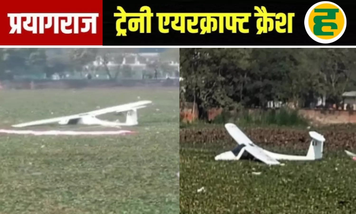 ANI: A trainee aircraft of IAF crashes into a pond in Prayagraj, UP. pic.twitter.com/tWgqr0bxmz