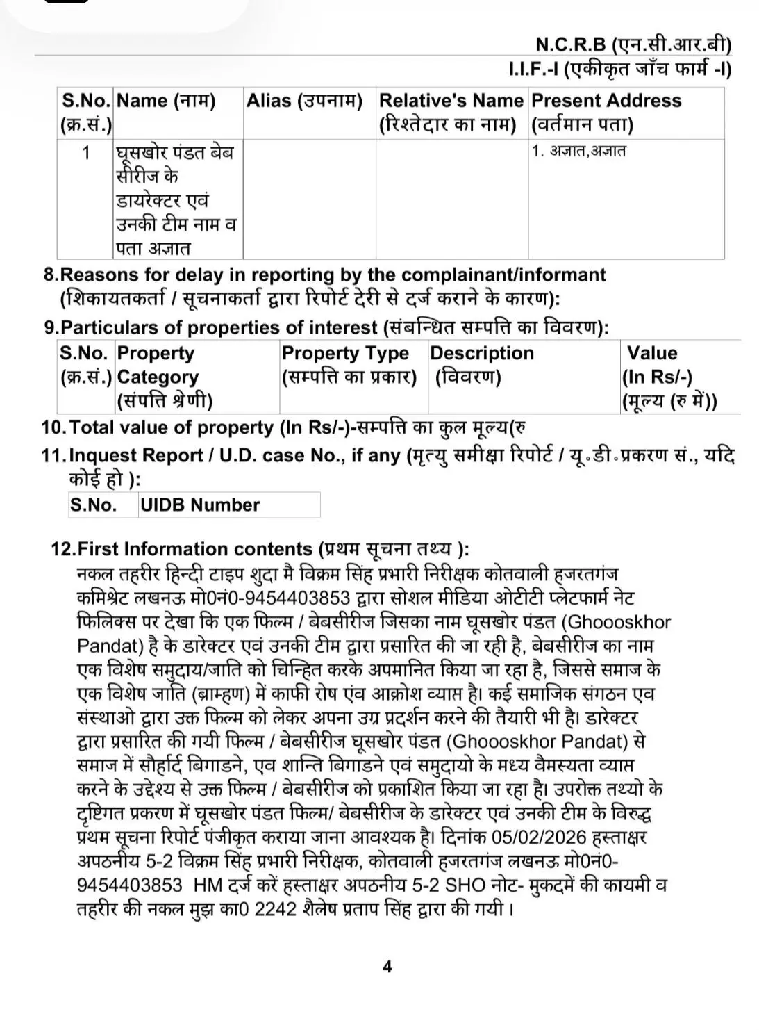 दर्ज शिकायत के मुताबिक, फिल्म का शीर्षक "घूसखोर पंडत" एक विशिष्ट समुदाय को अपमानित करने के उद्देश्य से रखा गया है। यह न केवल जातिगत विद्वेष पैदा करता है, बल्कि समाज के एक बड़े वर्ग की छवि को भी धूमिल करता है।