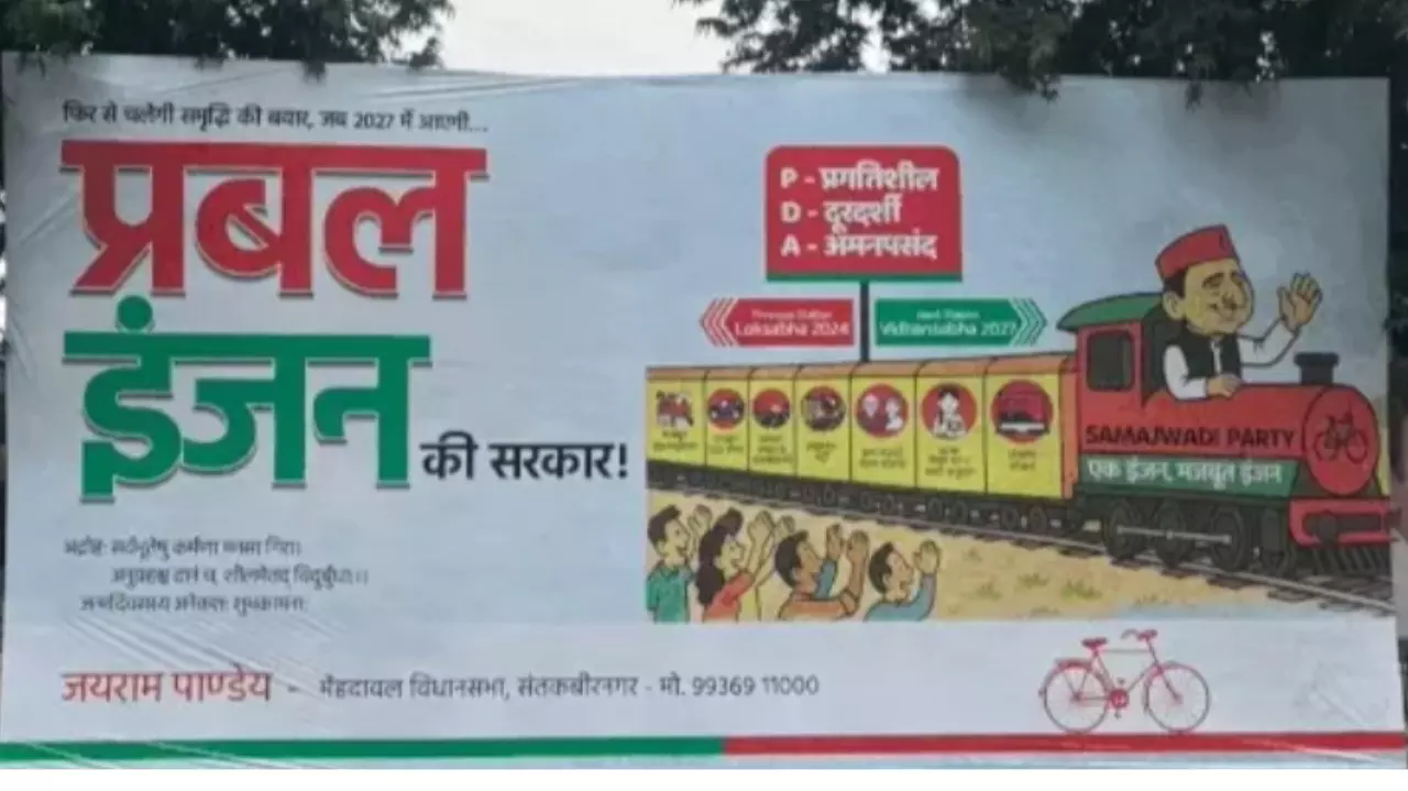 होर्डिंग वार में नया दांव: भाजपा का 'डबल इंजन' बनाम सपा का 'प्रबल इंजन', 2027 के लिए बिछ रही सियासी बिसात!