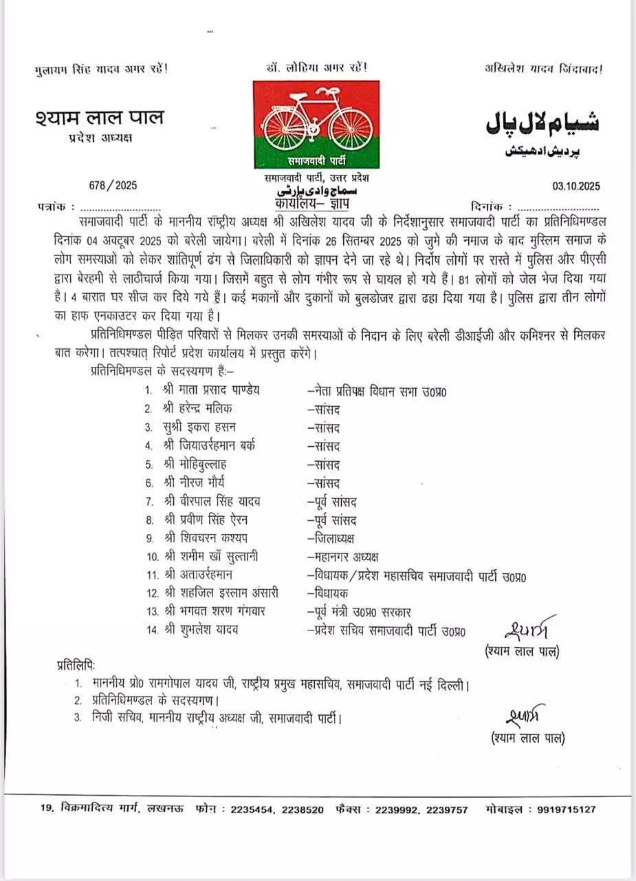 बरेली हिंसा: बाहरी नेताओं की नो एंट्री, सपा प्रतिनिधिमंडल रोका गया; शहर में धारा 163 लागू