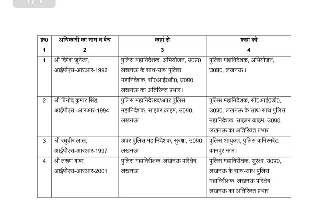 IPS Transfer: यूपी में प्रशासनिक फेरबदल: चार सीनियर IPS अधिकारियों का तबादला,रघुवीर लाल कानपुर के नये पुलिस आयुक्त