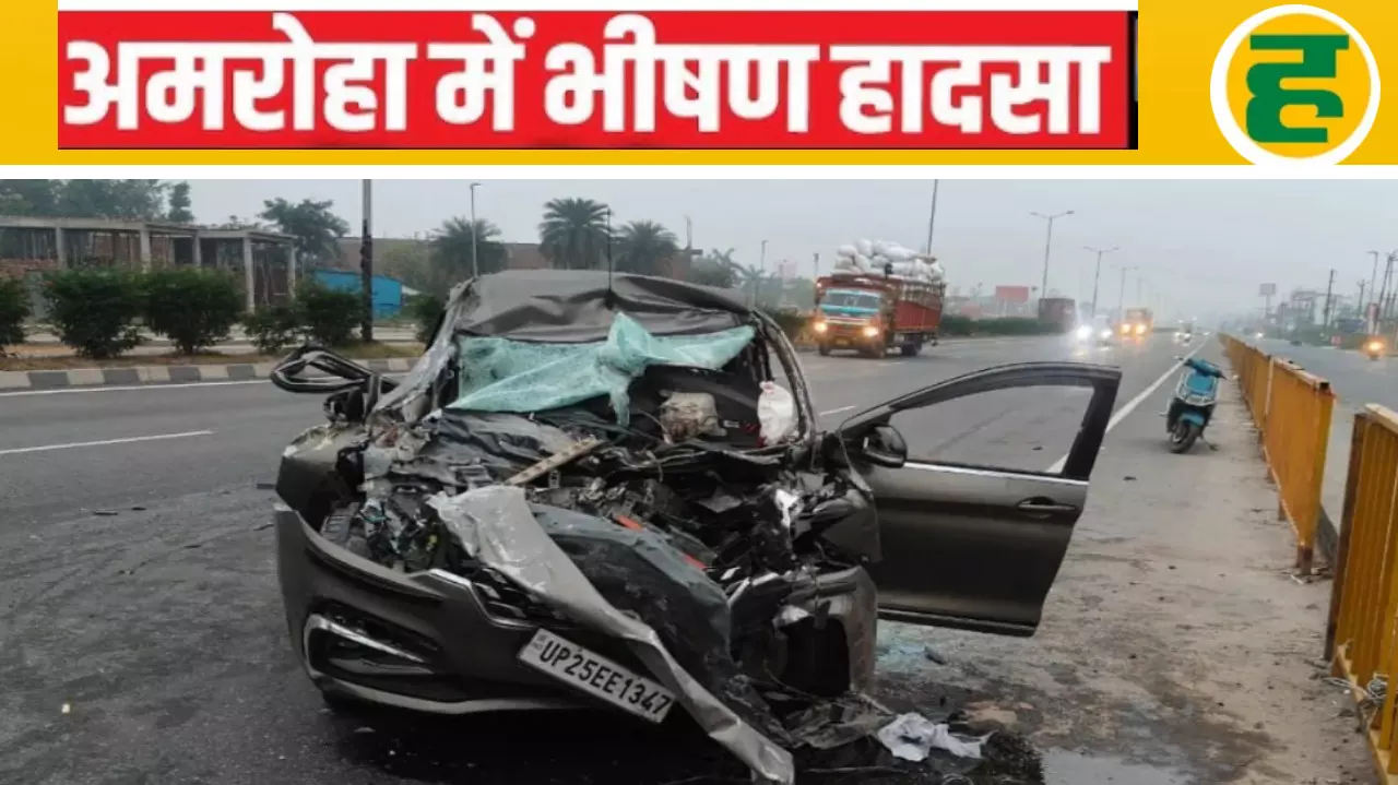 अमरोहा : उत्तर प्रदेश के अमरोहा ज़िले में नेशनल हाईवे पर बने एक अवैध कट के कारण आज तड़के एक भीषण सड़क हादसा हो गया। इस दुर्घटना में एक तेज रफ्तार कार और एक पिकअप वाहन की जोरदार टक्कर हो गई, जिससे दो युवा कपड़ा व्यापारियों की मौके पर ही दर्दनाक मौत हो गई।