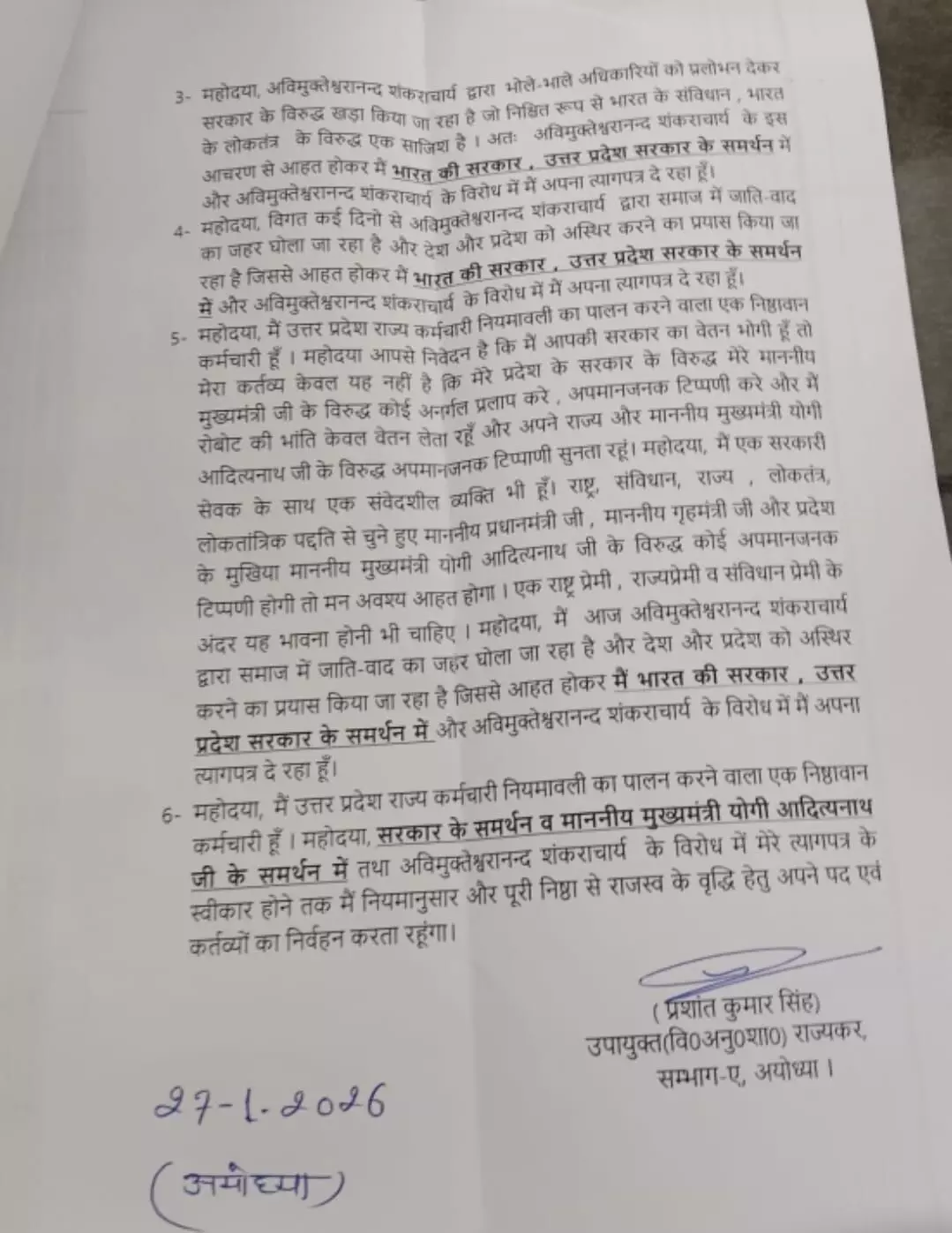 उपायुक्त स्तर के अधिकारी द्वारा किसी धार्मिक गुरु की टिप्पणी के विरोध में इस्तीफा देना एक नई तरह की मिसाल पेश कर रहा है, जिससे शासन और संत समाज के बीच का विवाद और अधिक गहरा सकता है।