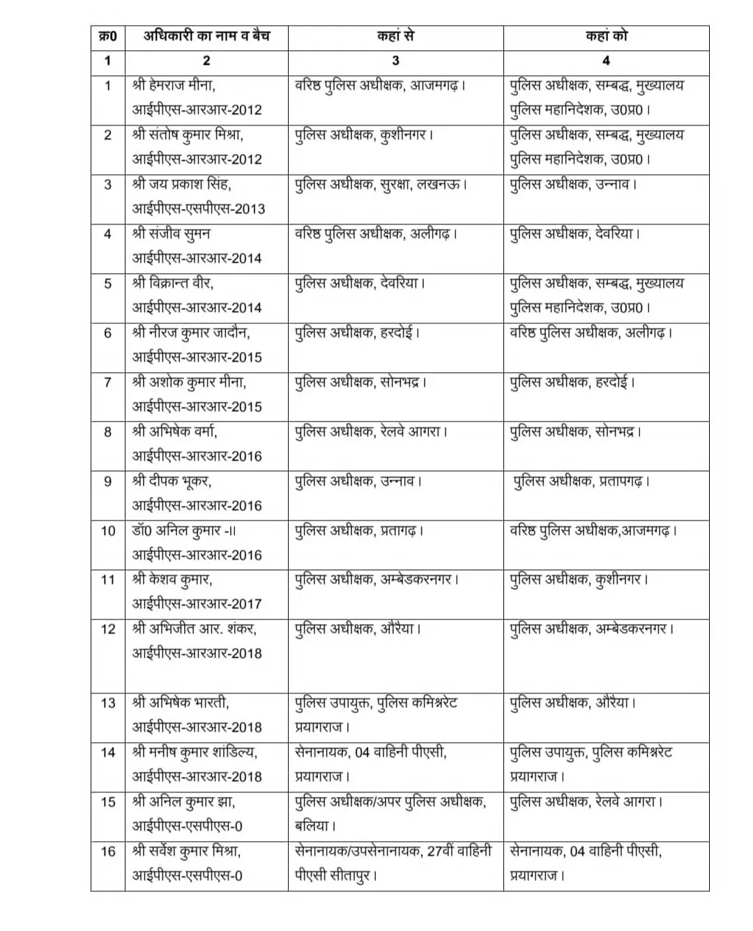 - देवरिया एसपी विक्रांत वीर को भी पुलिस महानिदेशक, उत्तर प्रदेश मुख्यालय से संबद्ध किया गया है।