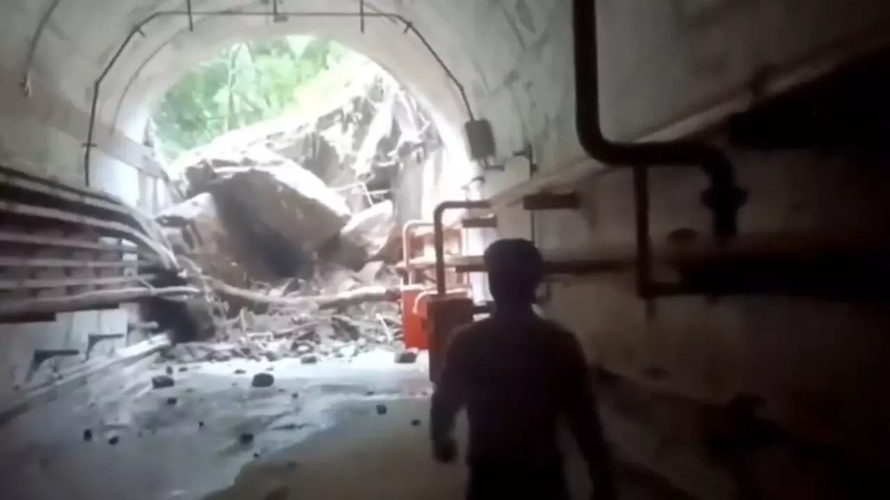 बड़ी-बड़ी चट्टानों से बंद हुई सुरंग