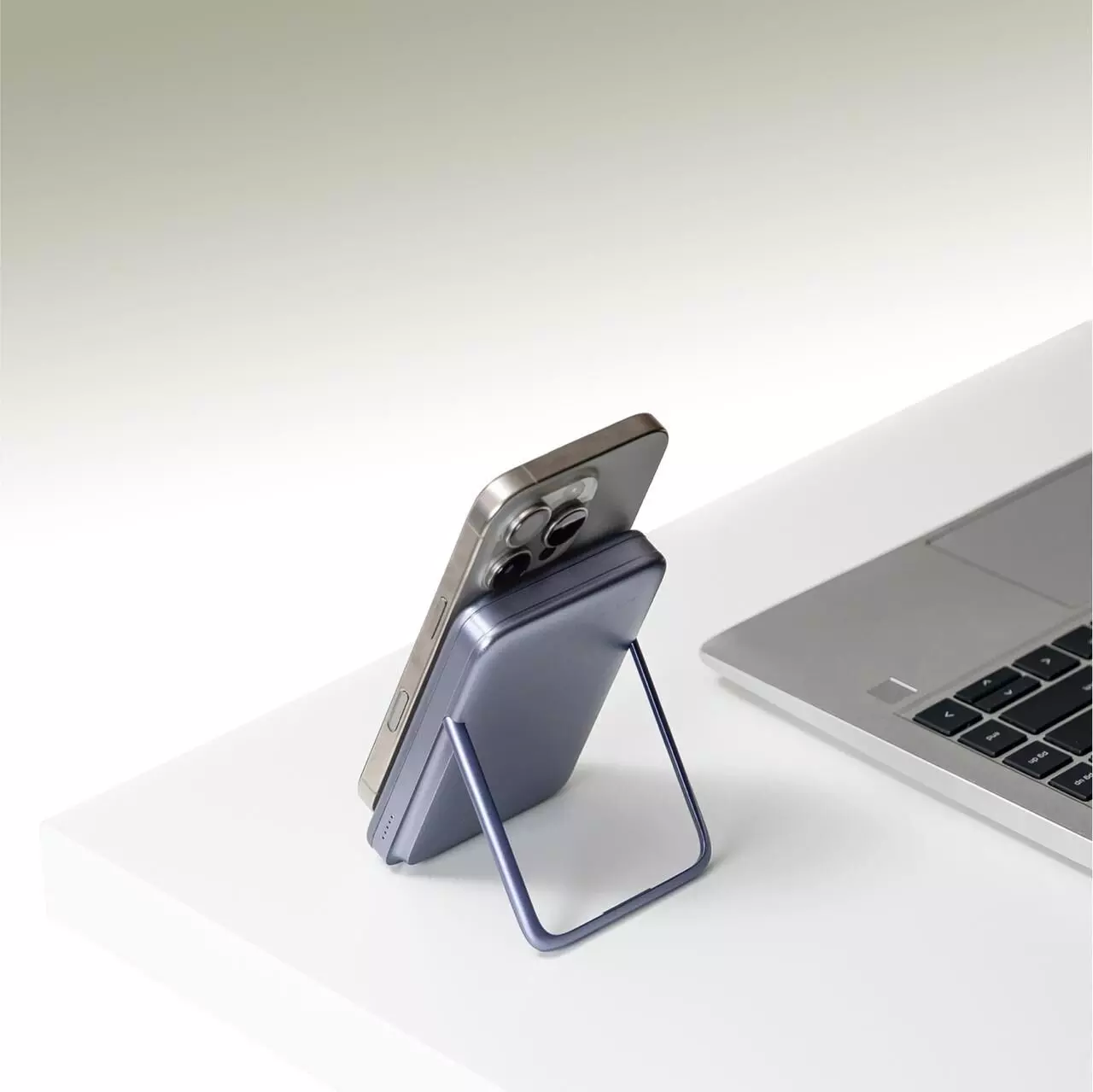MagSurge पावरबैंक का डिजाइन काफी कॉम्पैक्ट और हल्का है। इसकी बॉडी मजबूत पॉलीकार्बोनेट मटेरियल से बनी है, जो इसे पोर्टेबल बनाती है। खास बात यह है कि इसमें बिल्ट-इन फोल्डेबल स्टैंड दिया गया है, जिसकी मदद से यूजर फोन चार्जिंग के दौरान वीडियो कॉल, मूवी स्ट्रीमिंग या वेब ब्राउज़िंग आसानी से कर सकते हैं।