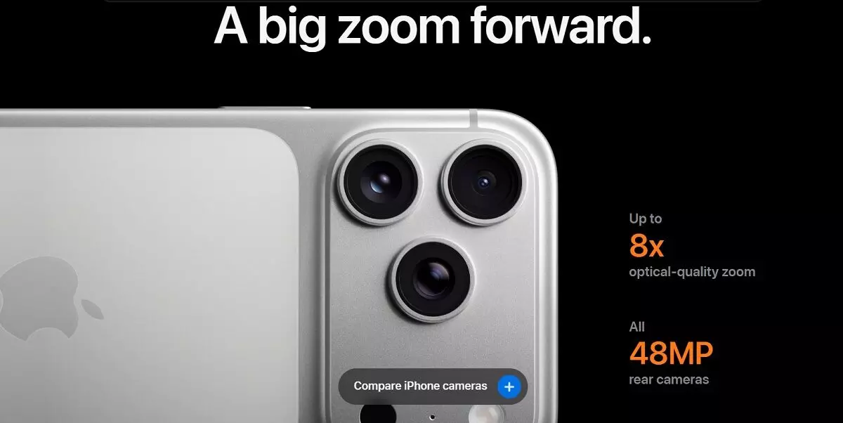 फोन में ट्रिपल 48MP Fusion कैमरा सेटअप है, जिसमें एक नया टेलीफोटो लेंस शामिल है जो 8x ऑप्टिकल ज़ूम सपोर्ट करता है — जो अब तक किसी भी iPhone में सबसे लंबा ज़ूम है। इसके अलावा, आप फोटो को डिजिटल रूप से 40x तक ज़ूम कर सकते हैं। सामने की तरफ नया 18MP Center Stage कैमरा है, जो ग्रुप सेल्फी के लिए ऑटोमैटिक फ्रेम एडजस्ट करता है, और 4K HDR वीडियो रिकॉर्डिंग को स्टेबलाइजेशन के साथ सपोर्ट करता है। इसमें फ्रंट और रियर कैमरों से एक साथ रिकॉर्डिंग की सुविधा भी मिलती है।