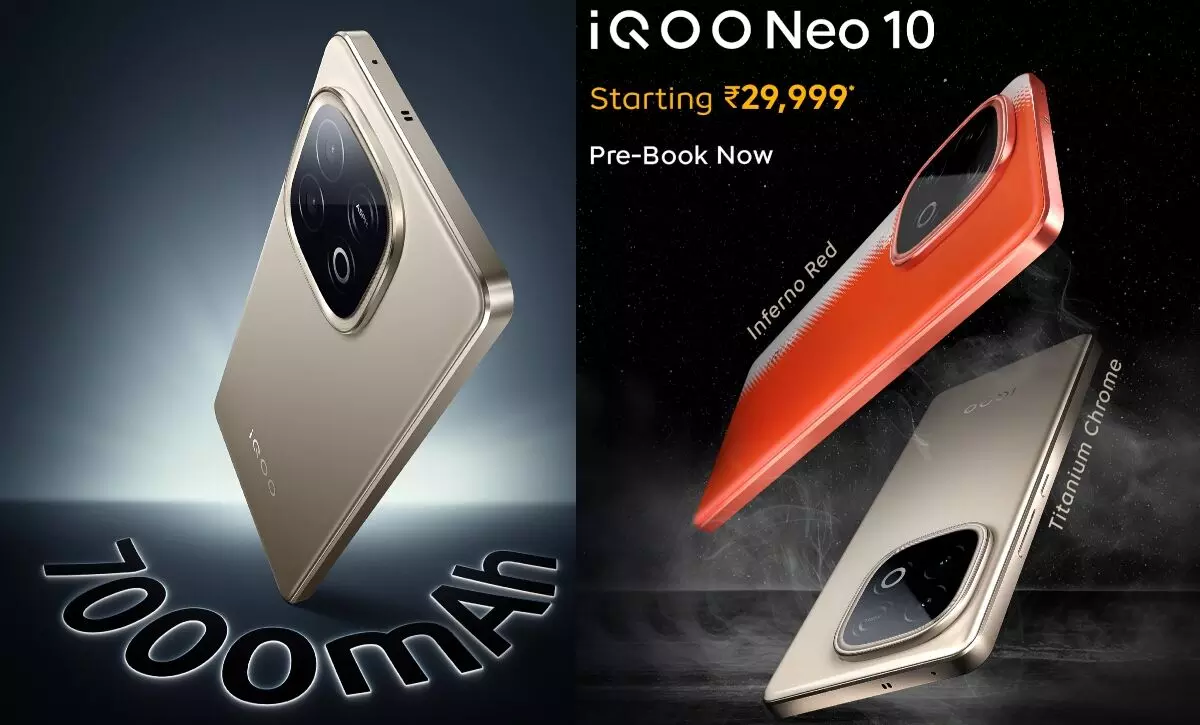 iQOO Neo 10 फोन दो कलर ऑप्शन इनफर्नो रेड और टाइटेनियम क्रोम के साथ उपलब्ध होगा। इसकी प्री-बुकिंग आज दोपहर 1 बजे से शुरू हो चुकी है और बिक्री 3 जून से Amazon और iQOO इंडिया के ई-स्टोर पर शुरू होगी।