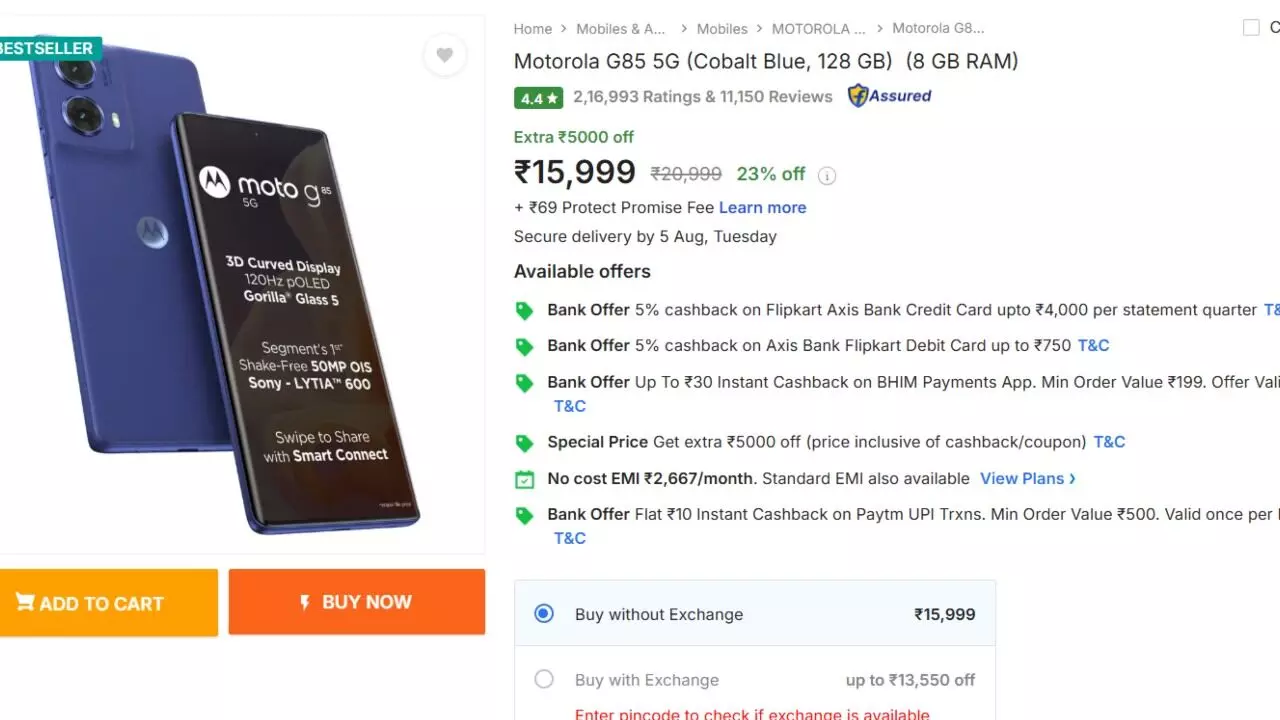 Flipkart Freedom Sale में Motorola G85 5G पर जबरदस्त छूट