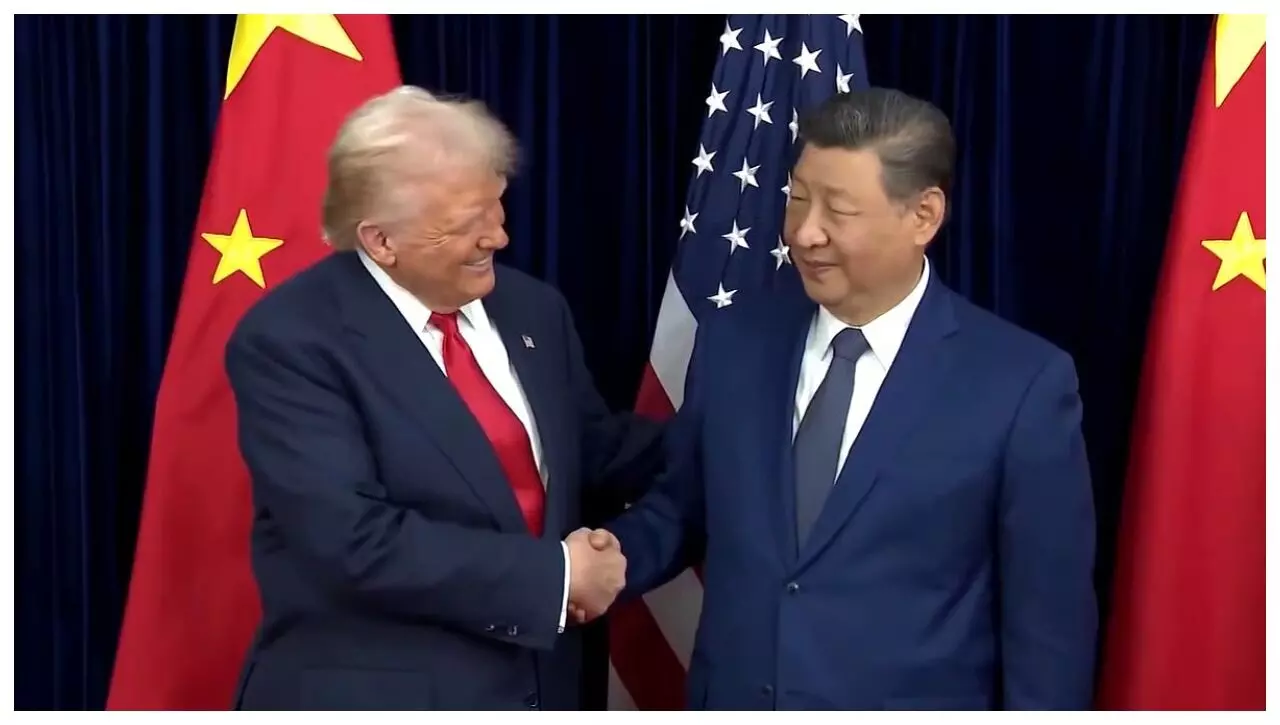 अमेरिकी राष्ट्रपति ट्रम्प और चीनी राष्ट्रपति जिनपिंग के बीच गुरुवार को अहम मुलाकात हुई। साउथ कोरिया के बुसान में तकरीबन 100 मिनट बातचीत हुई है। बिजी शेड्यूल के चलते दोनों नेताओं की मुलाकात बुसान एयरपोर्ट पर हुई। ट्रम्प ने दक्षिण कोरिया से रवाना होने के बाद जानकारी दी कि चीन पर फेंटानाइल से जुड़ा 10% टैरिफ कम किया गया है।